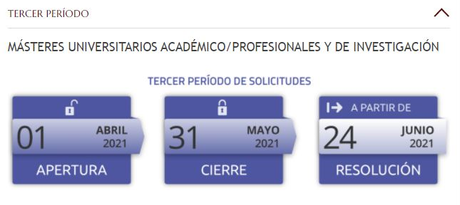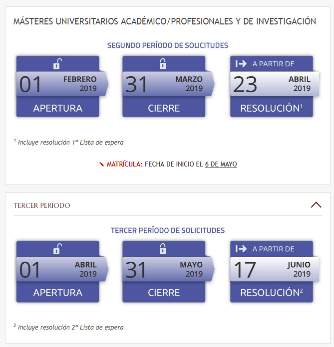 Periodos de solicitud: https://www.uc3m.es/postgrado/admision/proceso